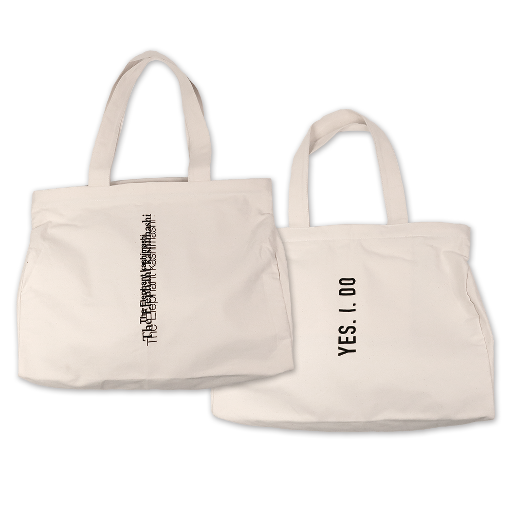 両面に、「YES. I. DO」と、3つのフォントが異なる「The Elephant Kashimashi」のバンド名を重ねてデザインしました。