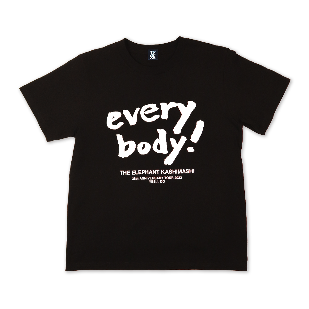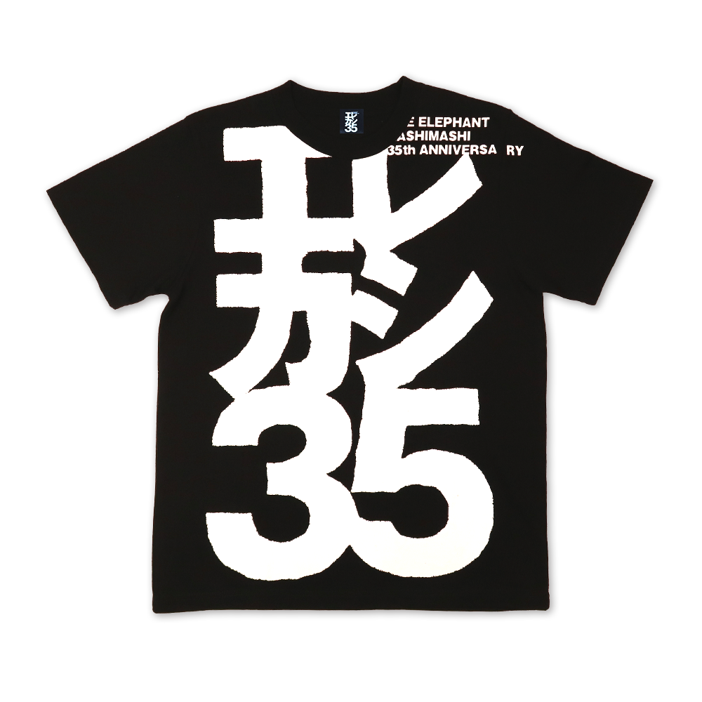 エレファントカシマシデビュー35周年のロゴマークをフロント全面にプリントした、インパクト大のTシャツです。