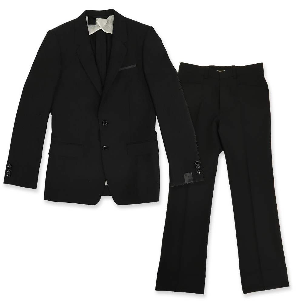 サイズも宮本着用サイズを再現。さらに、今回の特別仕様として、ジャケットの内側、パンツのポケットの内側それぞれに、宮本浩次直筆の「エレファントカシマシ」「宮本浩次」の文字をデザイン、一部のボタンには「THIRTY FIVE」の刻印入りです。特別な1着に仕上がりました。