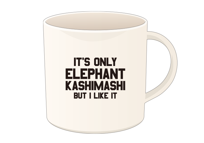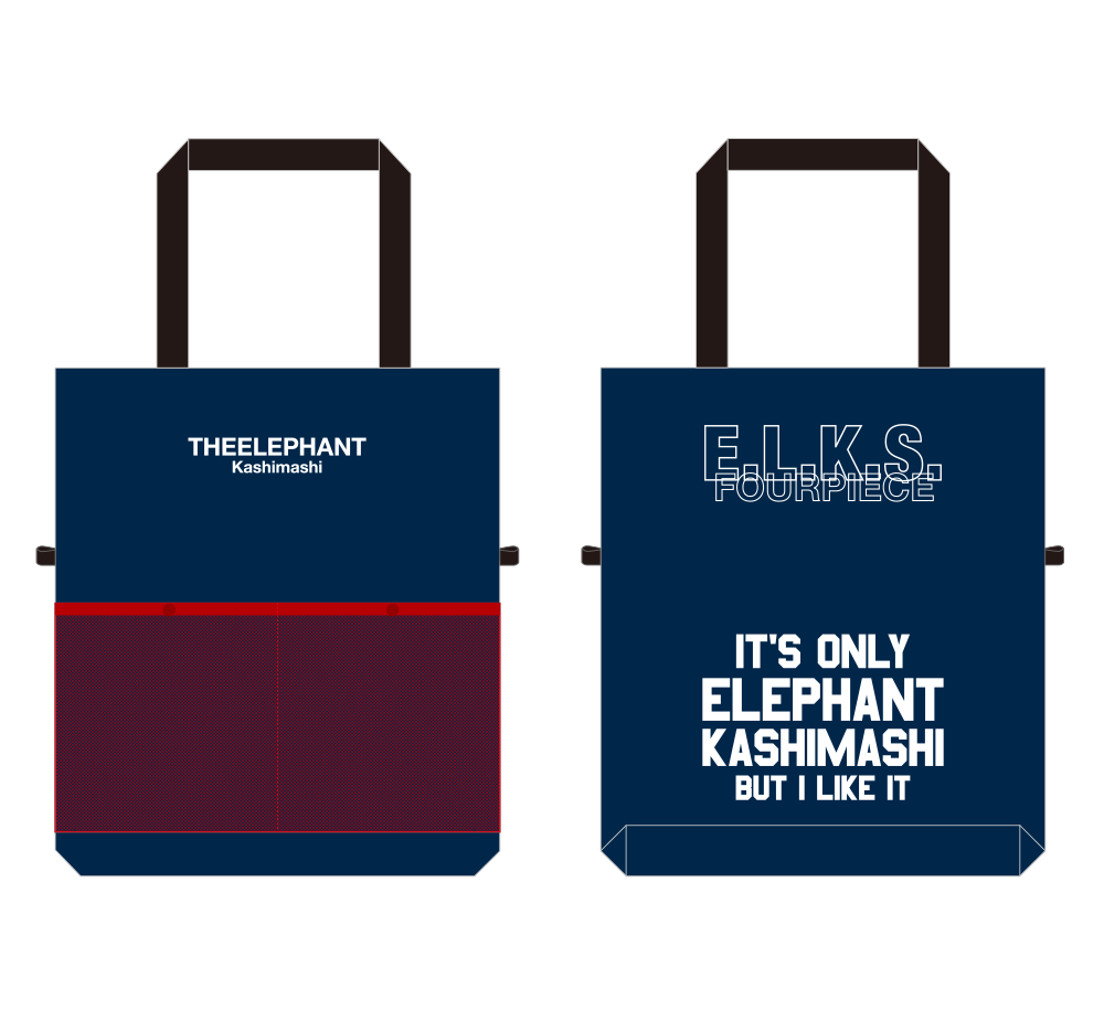 表面には、「THE ELEPHANT KASHIMASHI」、裏面には「IT'S ONLY ELEPHANT KASHIMASHI BUT I LIKE IT」の文字がデザインされたバッグです。トートバッグと、ショルダーバッグの2wayでご使用いただけます。
