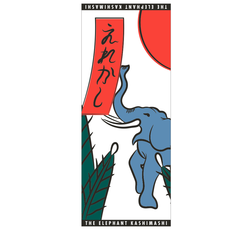 表側には、「THE ELEPHANT KASHIMASHI」の文字があしらわれており、シンプルで、着やすい仕上がりになりました。