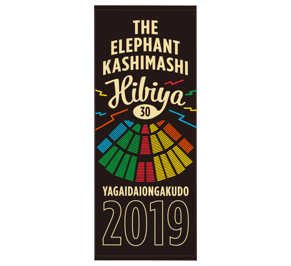 日比谷野外大音楽堂ライブの30回連続開催を記念し、鼻で水引を結ぶ“象”が描かれた、お祝い感あふれるデザインです。これからもエレファントカシマシと「末永いおつきあい」をお願いいたします。