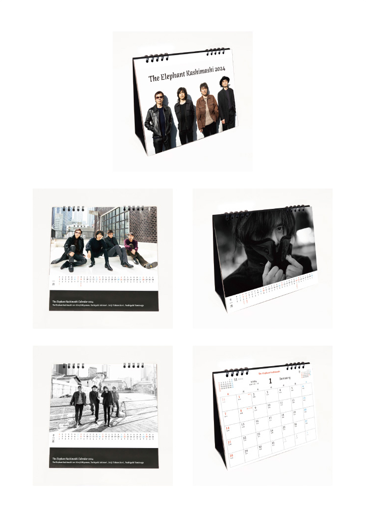 毎年恒例、エレファントカシマシカレンダーの2024年版。写真は今回ももちろんすべてカメラマン 岡田貴之氏撮影です。片面には写真を大きくデザイン、もう一方の面には予定も書き込めるカレンダー面の、両面仕様の卓上カレンダーです。[仕様]卓上タイプ(リングタイプ) 全13枚/両面印刷[2024年1月1日~12月31日]