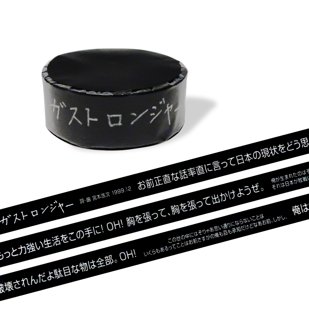 2.5mにわたって、「ガストロンジャー」の歌詞をすべて盛り込んだデザインのマスキングテープです。