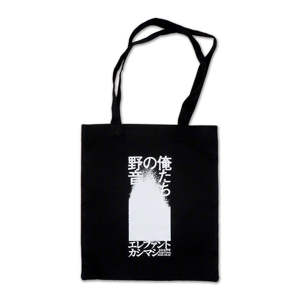 「〜日比谷野音 The Final〜 俺たちの野音」のロゴを全面にデザインしたトートバッグ。A4サイズが入るサイズのマチなしの仕様で、ちょっとしたお出かけやサブバックとして使うのにぴったりなサイズです。