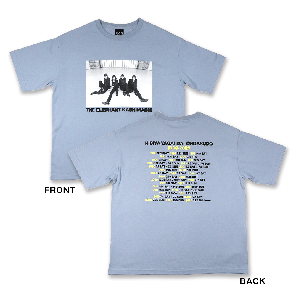 アシッドブルーのTシャツに、フロントにはメンバーの写真、バックにはこれまでのエレカシ野音公演の日程をデザインしました。