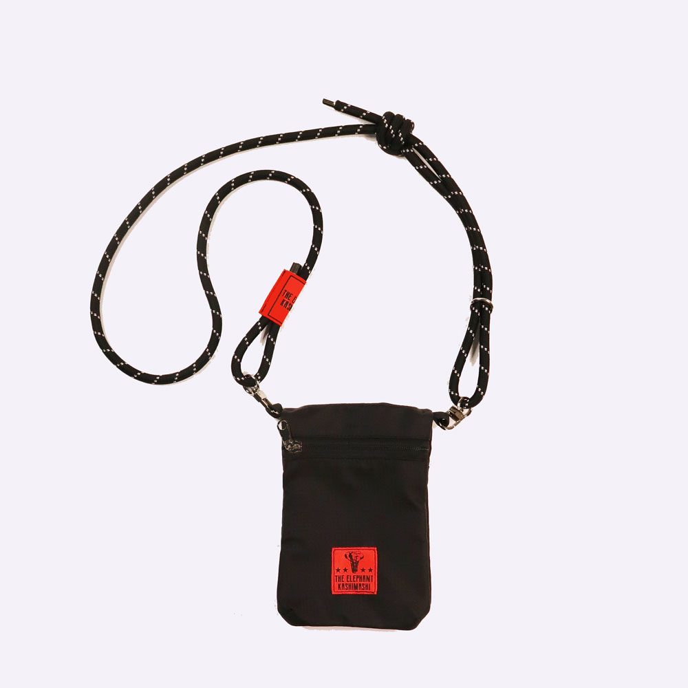 斜めがけできるストラップのついた、スマートフォンがすっぽり入るサイズのポーチです。