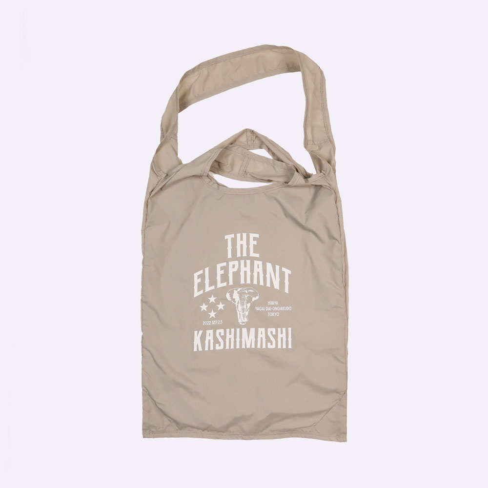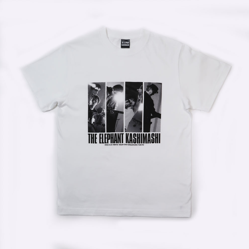 「THE ELEPAHANT KASHIMASHI」のバンド名が、象のイラストと共に書かれた、シンプルで力強いデザインのTシャツです。